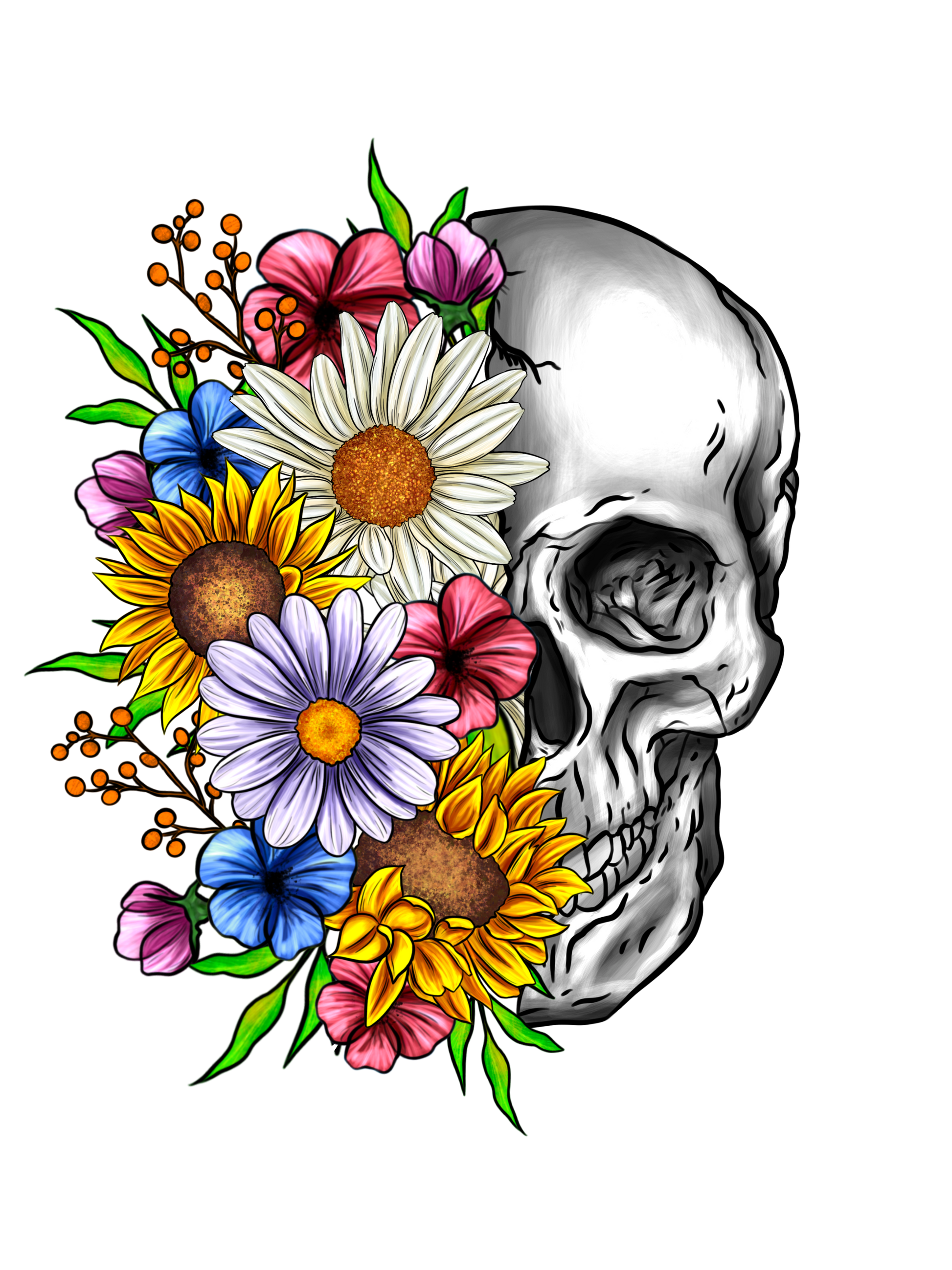 Skull Flower DTF Transfers